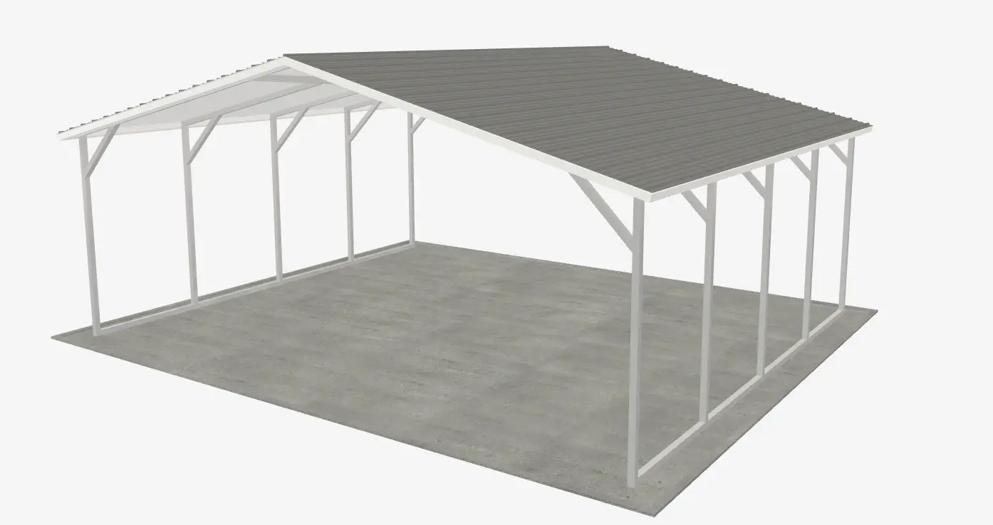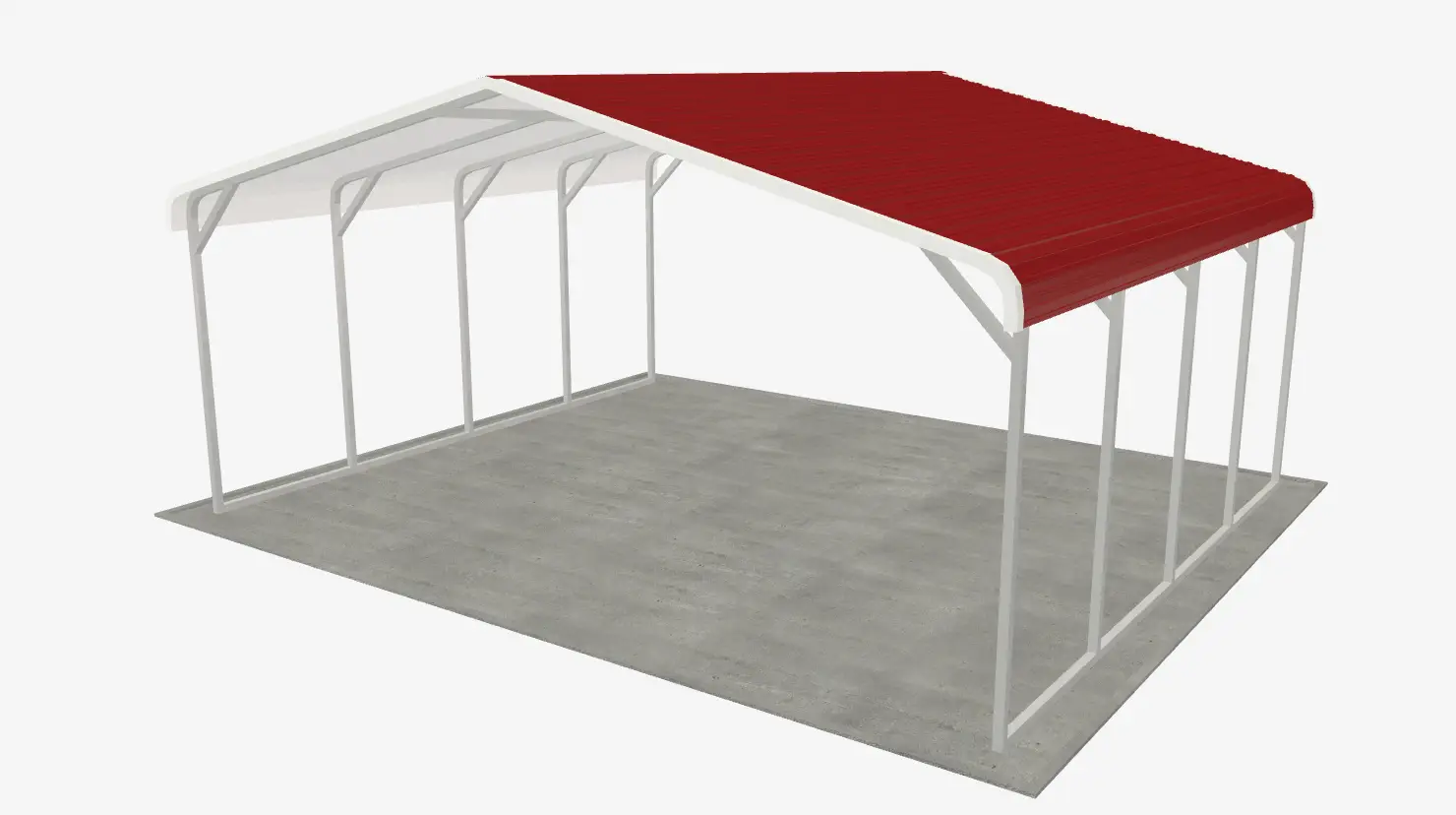 Regular style roof is the most economical choice for any metal garage. Regular roof tends to be lighter than Boxed Eave and Vertical style roof. The corrugated ridges run from end to end. This roof style works great in the area with less heavy wind or rain. It can protect your vehicle from direct sunlight or damage from sun exposure or UV.
