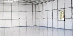 *Clear Span Commercial Building with High Clearance Truss & 2″ Fiberglass Insulation Pictured Above*